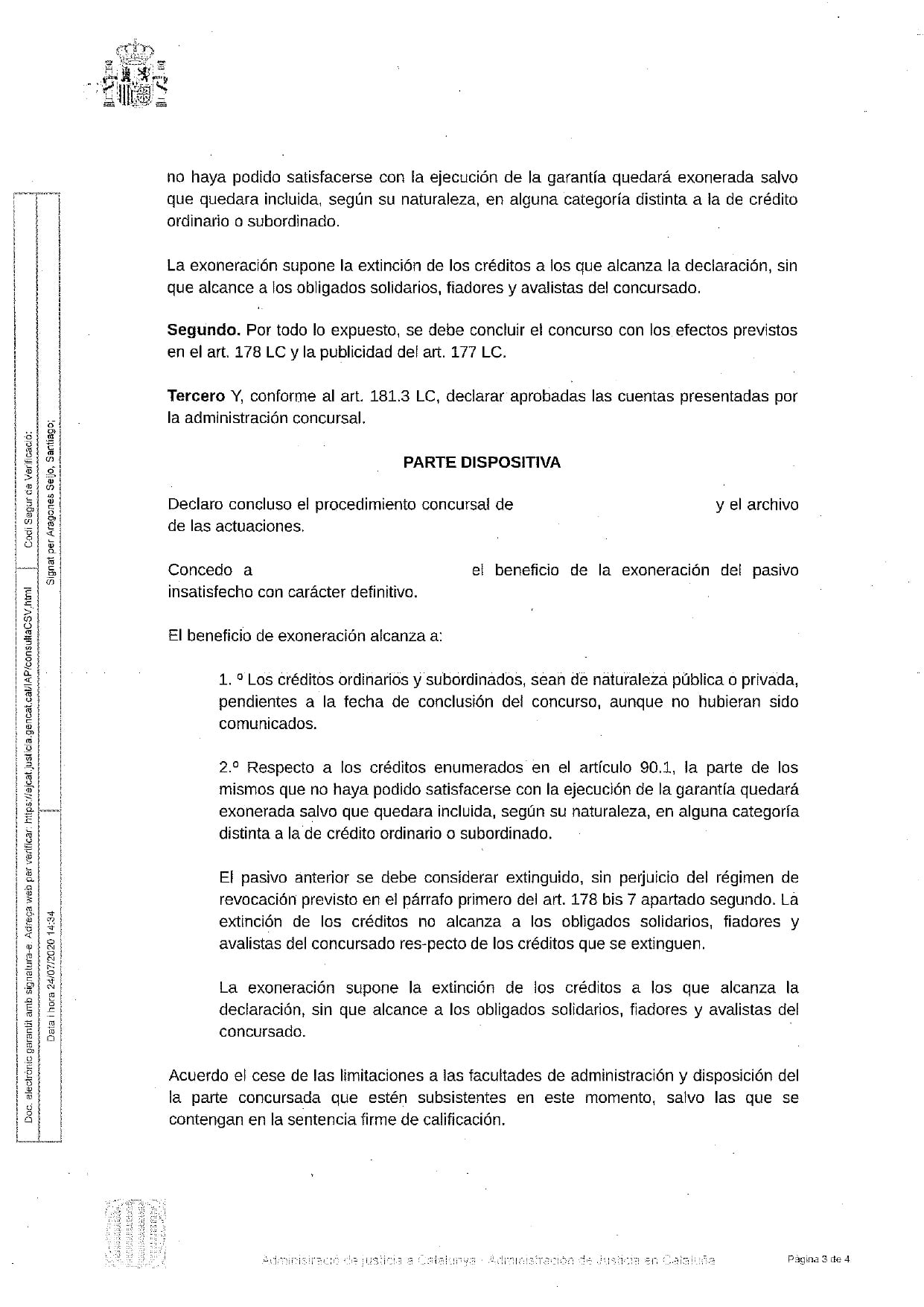 Avui hem rebut Auto de Benefici d’Exoneració del Passiu Insatisfet (BEPI) on es perdona un deute total de 540.595,84€!!